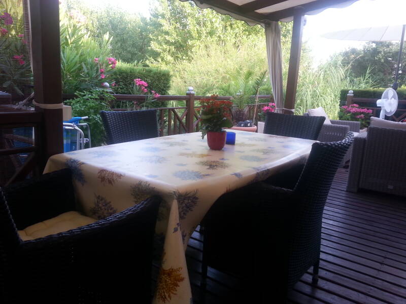 "Mobil-home Jan" est équipé de 2 chambres à coucher sur la terrasse panoramique, belle terrasse en bois semi-couverte, salon extérieur, vue partielle sur la mer, lave-vaisselle, lave-linge, TV à écran plat, radio, CD, Philips Senseo, cafetière, micro-ondes, four, climatisation, barbecue, recharge de la voiture hybride au mobilhome est possible et 300 mètres à pied de la plage.