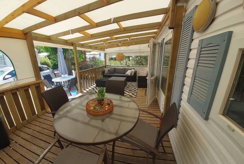 ''Mobilehome Deborah'' is equipped with 2 bedrooms, living room, air conditioning, terrace, Philips Senseo, TV, dishwasher, washing machine, oven, 300 metres from the beach in a nice quiet place.